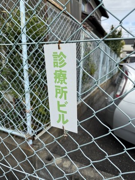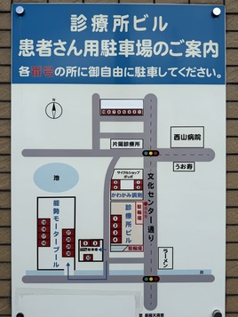 2つの写真はそれぞれ、診療所ビル1F入り口近くにある駐車場のご案内の地図と、診療所ビルの駐車場にそれぞれつけてある目印のプレートです。